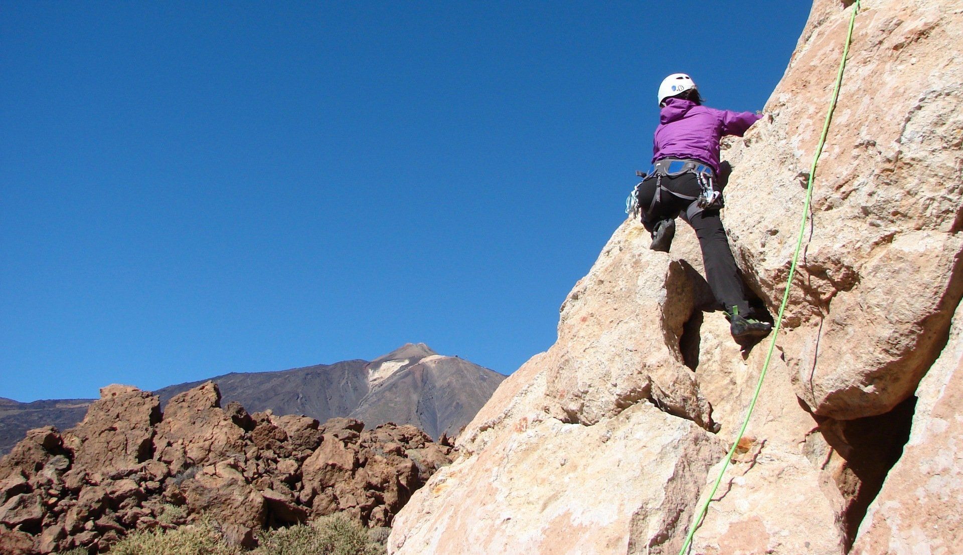 We will walk for 15 minutes in the middle of Las Cañadas of Teide and approach the climbing sector, where anyone can taste the excitement of their first climb in top-rope NO LIMITATIONS FOR ANYONE.